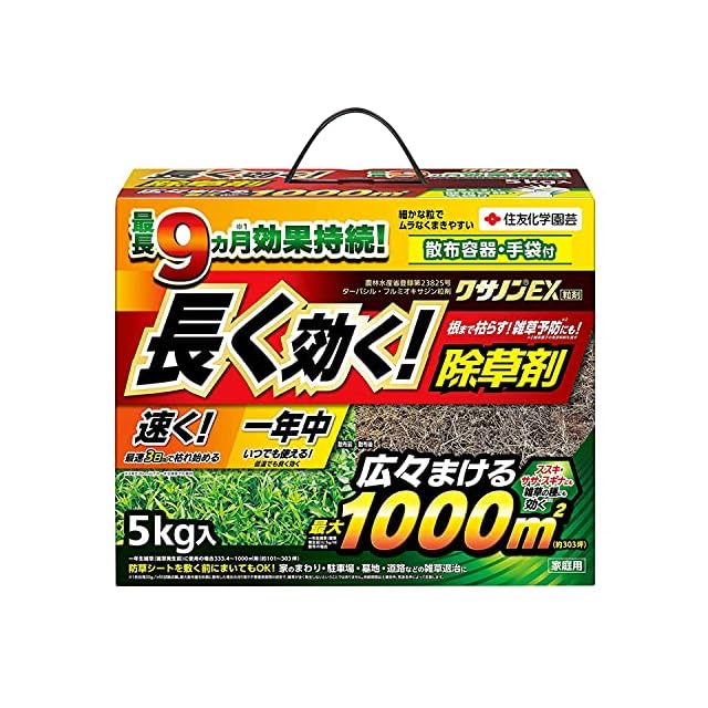 特徴:2種類の有効成分で、スギナ・ススキ・ヤブガラシなど各種雑草の葉や茎だけでなく根までスッキリ枯らします。