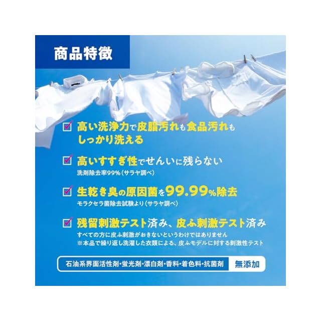 原材料: 界面活性剤、ポリオキシエチレンアルキルエーテル、ポリオキシアルキレンアルキルアミン、アルキルアミンオキシド、純石けん分、安定化剤