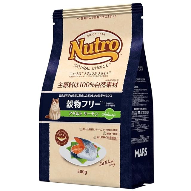 商品名:Nutro ナチュラルチョイス 成猫用 穀物フリー アダルト サーモン 500g ドライフード 総合栄養食 1歳以上 キャットフード 猫 お試し グレインフリー 厳選自然素材 消化吸収の健康維持 香料・着色料 無添加 ニュートロ