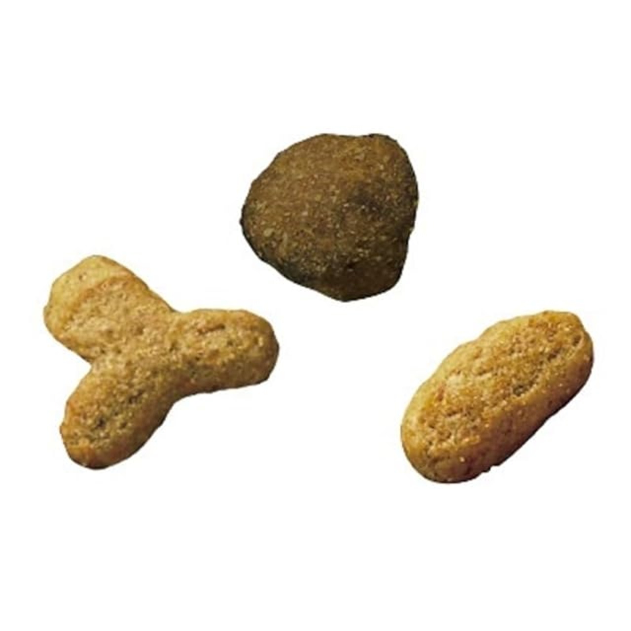 原材料:チキン、コーングルテン、チキンミール、小麦、食物繊維(ビートパルプ、ライスファイバー、可溶性繊維、セルロース)、米、小麦たんぱく、脱脂大豆、大麦、フィッシュミール(オメガ3脂肪酸源)、鶏脂(オメガ6脂肪酸源)、たんぱく加水分解物、酵母(βグルカン源)、ミネラル類(カルシウム、リン、カリウム、ナトリウム、クロライド、マグネシウム、鉄、銅、マンガン、亜鉛、ヨウ素、セレン)、カラメル色素、ビタミン類(A、D、E、K、B1、B2、パントテン酸、ナイアシン、B6、葉酸、ビオチン、B12、コリン、C)、アミノ酸類(メチオニン、タウリン、L-カルニチン)