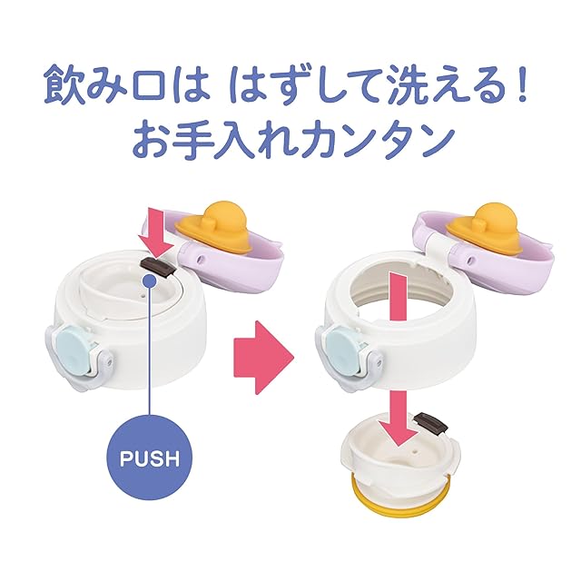 素材・材質:内びん:ステンレス鋼 / 胴部:ステンレス鋼(アクリル樹脂塗装) / フタ・せん本体・飲み口:ポリプロピレン / フタパッキン・せんパッキン:シリコーンゴム