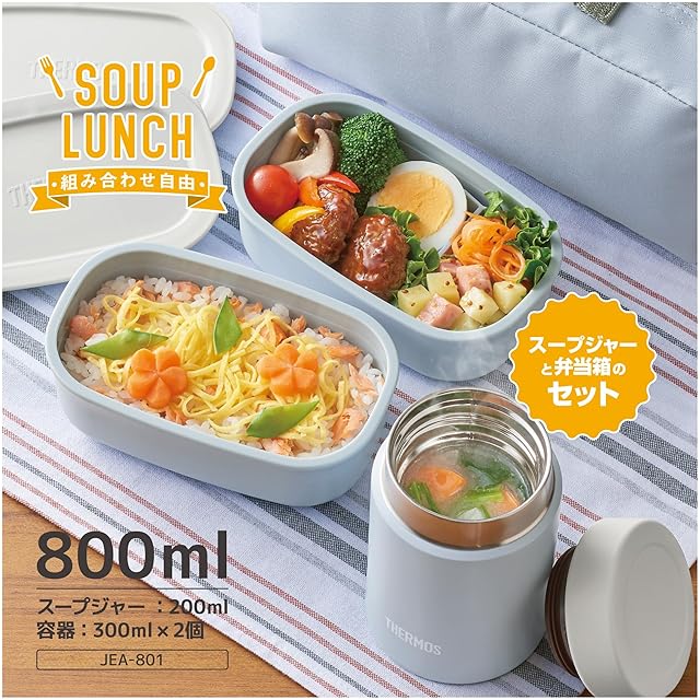サイズ(約):幅20.5×奥行8.5×高さ10.5cm、本体重量(約):400g、容量:スープジャー/200ml・おかず容器/300ml×2個