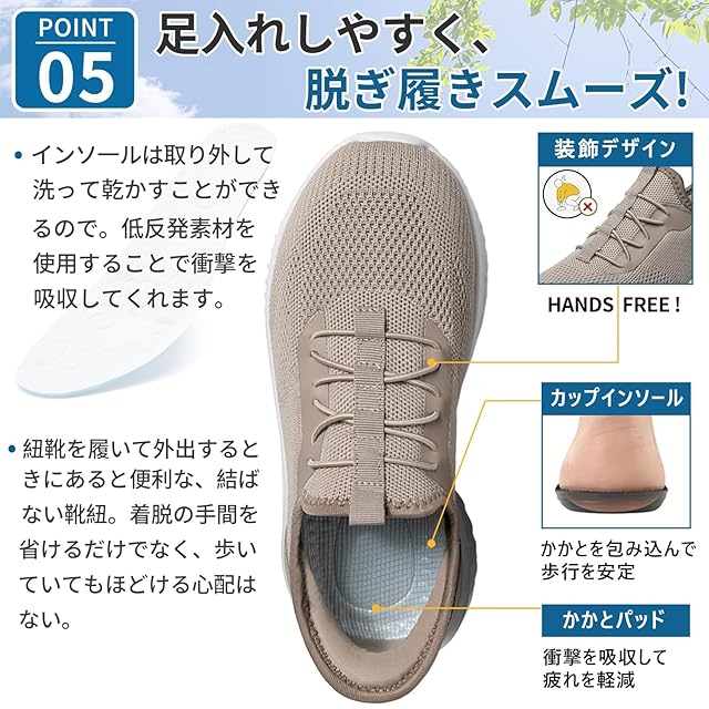 手を使わずに履けるスニーカー:このスニーカーは、手や靴ベラを使わずに履ける革新的なデザイン。特殊なかかとの構造で、立ったまま足を滑り込ませるだけで簡単に着用できます。靴べらが内蔵されているかのような感覚で、しゃがむ必要もありません。柔らかい綿の裏地を採用し、足への負担を最小限に抑え、快適な履き心地を実現。年配の方や妊娠中の方、そして頻繁に靴を着脱する方にも最適です。通常の靴のサイズをお選びください。