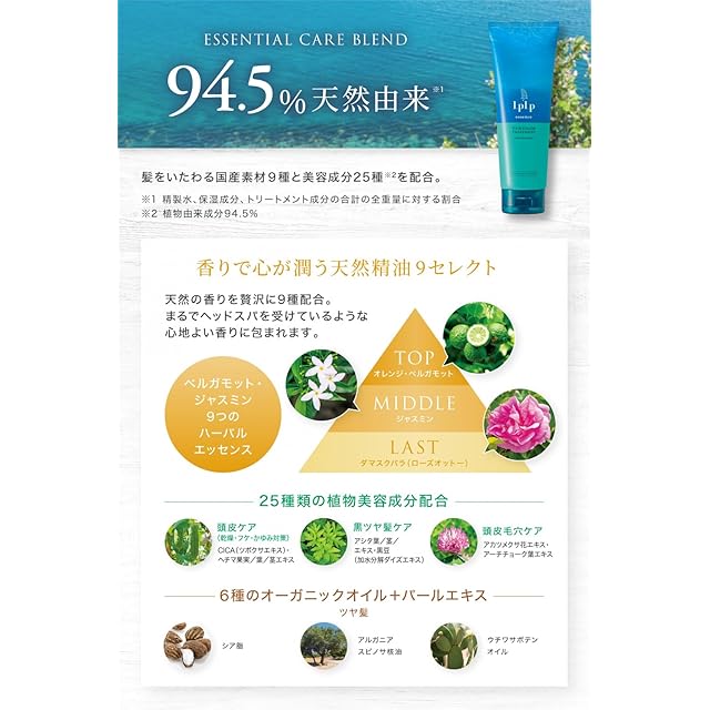 ✅【美容成分94.5%*】25種類の植物由来の美容成分と6種のオーガニック認証オイル配合で、頭皮環境を整え、美しいツヤ髪に導く。さらに、ベルガモット・ホワイトジャスミンのさわやかで優雅な落ち着きのある香りで、まるでヘッドスパを受けているような気分に。※精製水含む