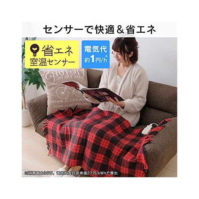 ●素材:ポリエステル50%、アクリル50%●電源コード長さ 電源側:約2.0m、本体側:約0.5m●表面温度 強:約50℃、弱:約40℃●温度調整:無段階●電気代の目安(1時間あたり):約1円 ※消費電力36W、電気料金目安単価27円/kWhで算出●機能:省エネ室温センサー、ダニ退治●お手入れ方法:手洗いでの水洗い可