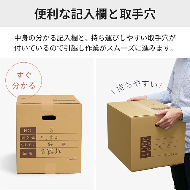 「ボックスバンクⓇ」ブランド商品。単身の引越しに必須のセット。届いてすぐに荷造りができます。