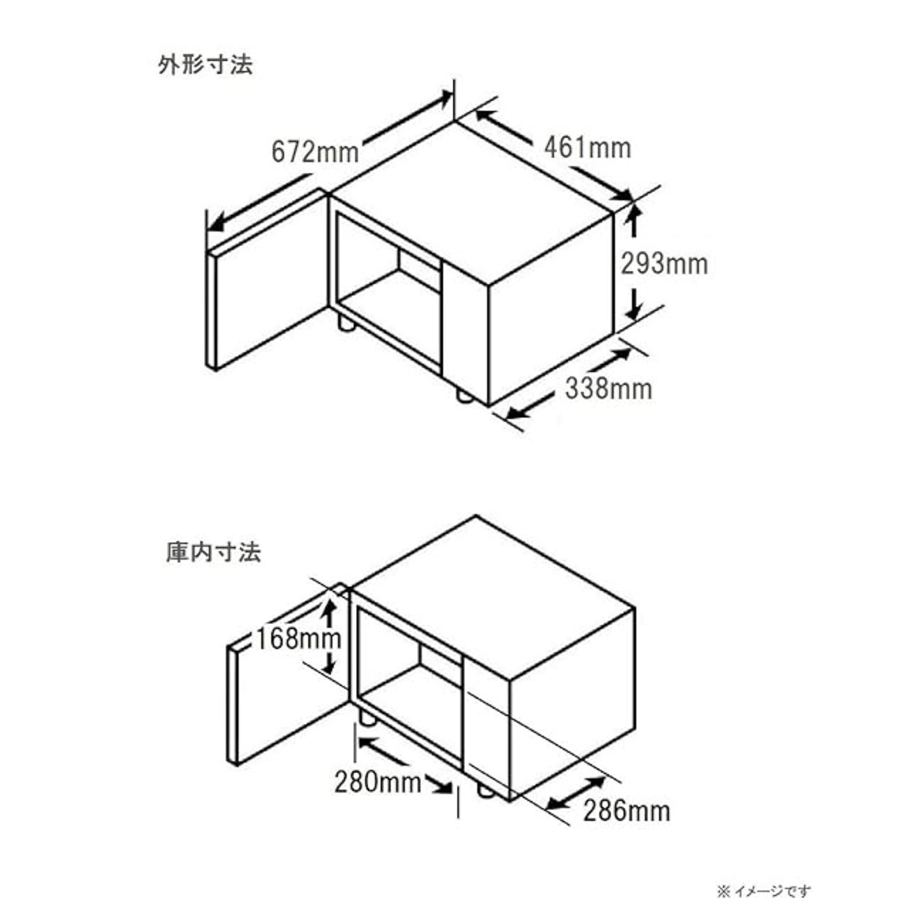 庫内寸法:幅280mm×奥行286mm×高さ168mm