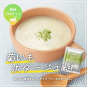 酵⺟プロテインスープ(菊いもポタージュ風味)(1包18g x 3包)エネルギー…65.880 kcal、タンパク質…4.158g、脂質…1.242g、炭水化物…9.918g、食塩相当量…1.1880g/ 酵⺟プロテインスープ(ポルチーニ茸クリーム風味)(1包18g x 2包)エネルギー…68.040 kcal、タンパク質…5.040g、脂質…1.206g、炭水化物…9.576g、食塩相当量…1.2240g/ 麹菌酵素ドリンク(甘酒ミルク風味)(1包13g x 2包)エネルギー…61.050 kcal、タンパク質…0.495g、脂質…0.615g、炭水化物…13.515g、食塩相当量…0.1650g