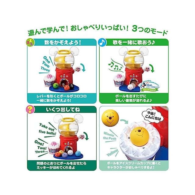 プーさんが絵本の内容をはなして、色・形・音を楽しく覚えられる