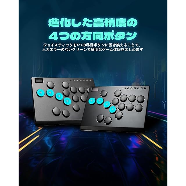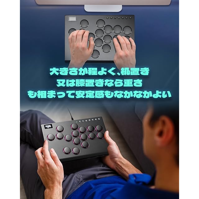 【本社最上位モデル& ロープロファイル16ボタン仕様のレバーレスアケコン】 スティックの操作による入力ミスや無駄を一切排除し、指先全体を使ったタイピング方式のコマンド入力に変換することで、コマンド入力の正確性をより早く高められると、話題のレバーレスコントローラー。高級な質感やスペックとポテンシャルと共に申し分ない性能です。ボタンの剛性は中々のモノです。本体デザインはアルミパネルでできていて、重厚感があるし、LEDライトによる装飾もあり格好いいです。基盤・システムにpico GP2040-CEを利用しており安心して長時間にお使い頂けます、体感では遅延が全く感じられなく、不具合修正などのファームウェア更新が可能です。対応機種:Windows 10以降/ Steam Deck/PS3/PS4/Switch/Raspberry Pi(Lakka、RetroPie、Recalbox、Batocera)/MiSTer/Android、Linux、iPadOS、macOS.