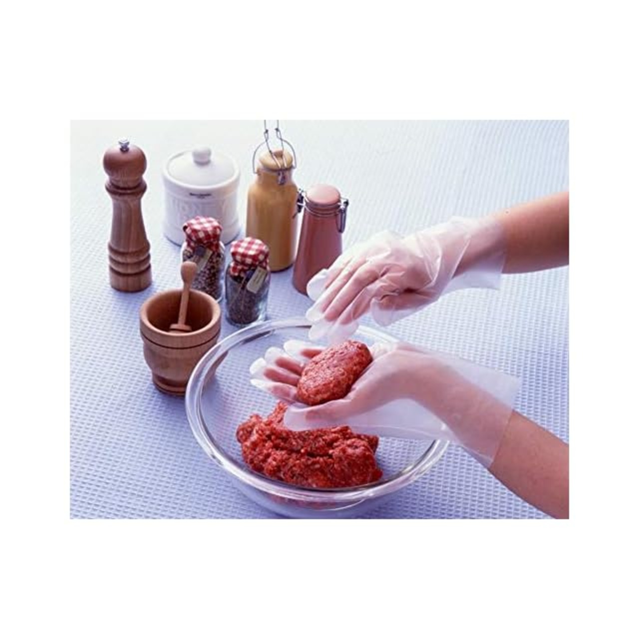 厚さ約0.025mm。脱ぎはめしやすいポリエチレン手袋100枚入り。