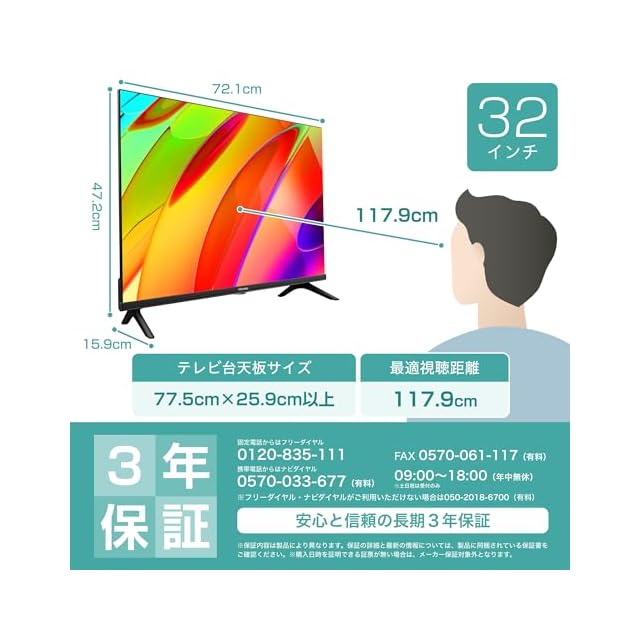 【安心の3年】お客様に安心して製品をお使いいただけるよう、ハイセンステレビ製品には3年が付いています。